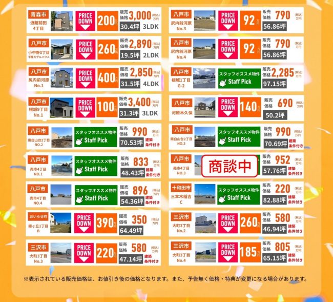 1月の価格改定物件情報もありますので